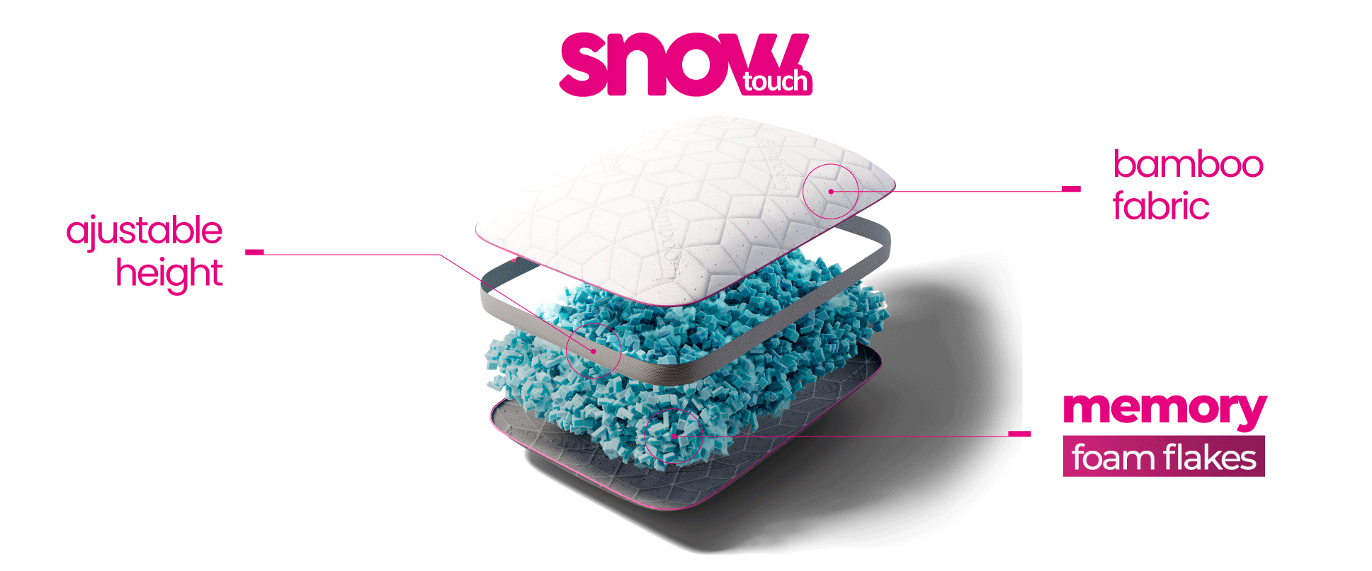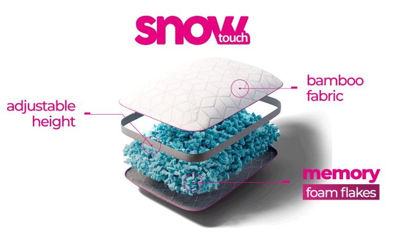 Made with memory foam flakes and gel particles, SnowTouch® ensures even distribution of pressure on the head and neck, helping to relieve and prevent pain caused by tension points.