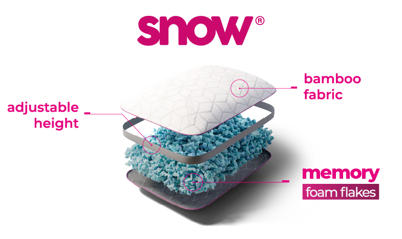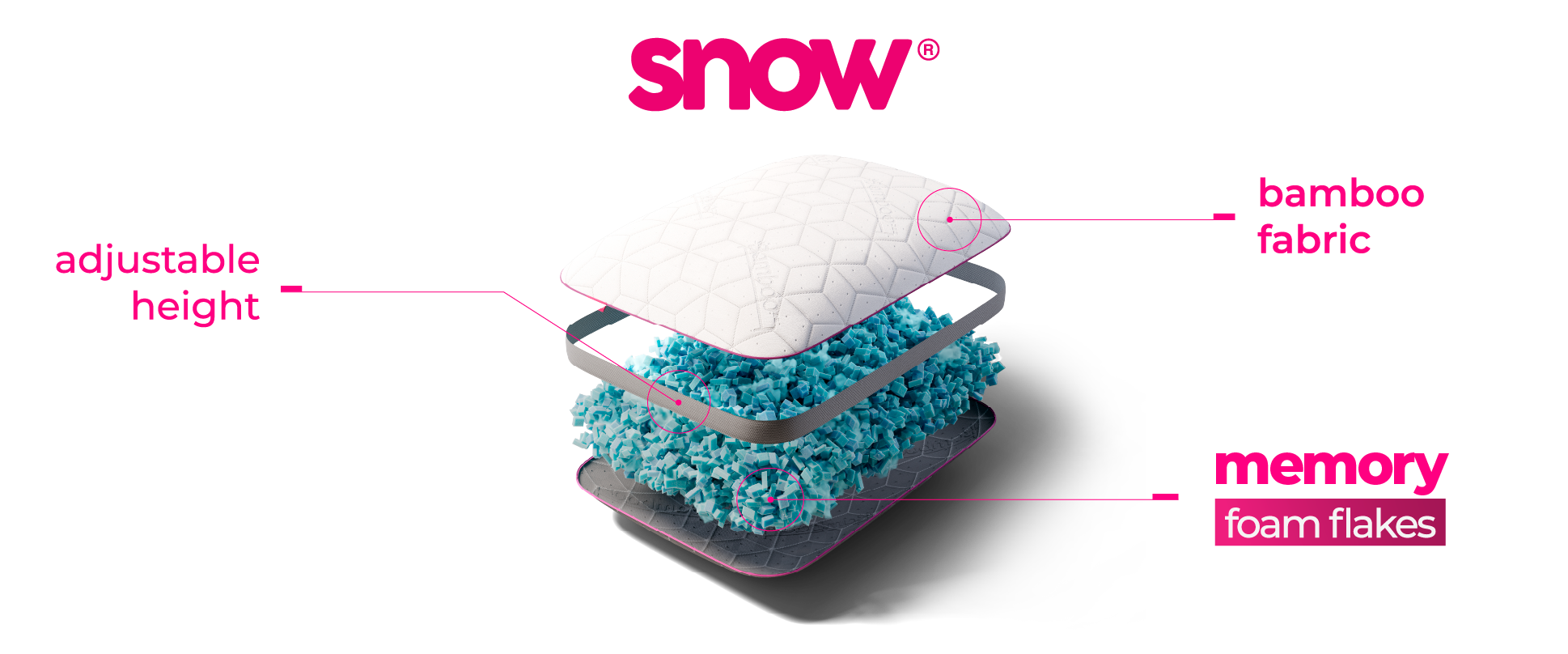 Made with memory foam flakes and gel particles, Snow® ensures even distribution of pressure on the head and neck, helping to relieve and prevent pain caused by tension points.